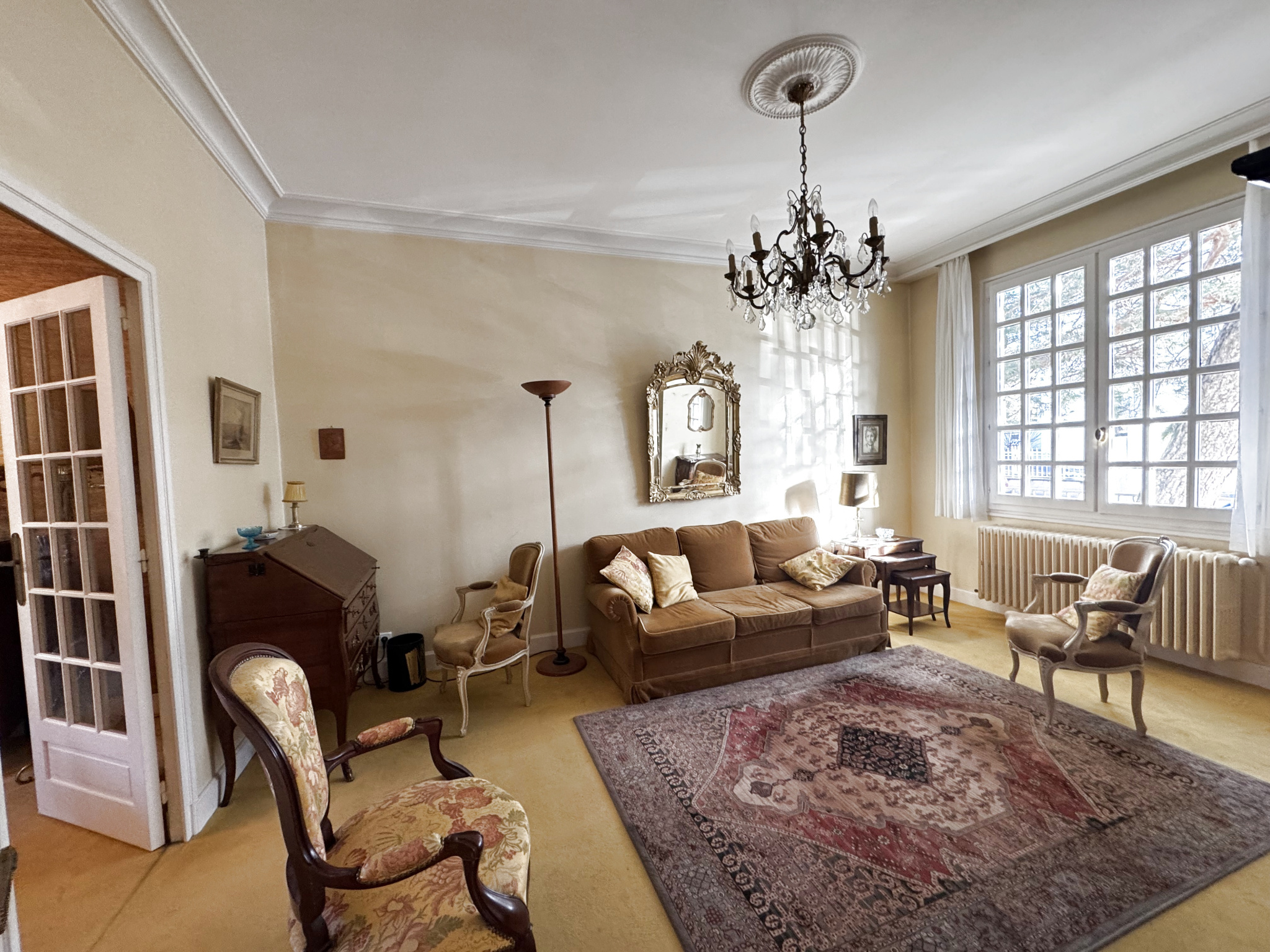 Dès l’entrée, le ton est donnée avec une belle hauteur sous plafond de 2m90, des moulures et une luminosité naturelle qui mettent en valeur les volumes. La cuisine indépendante de 9,21 m², ouverte sur le jardin, prolonge un espace de vie chaleureux composé d’un séjour de 15,83 m² lui aussi ouvert sur le jardin et d’un salon de 17,50 m². Traversant Est-Ouest, avec en prime le charme des plafonds à la française. Un WC indépendant ainsi qu’un accès au sous-sol complètent ce niveau.