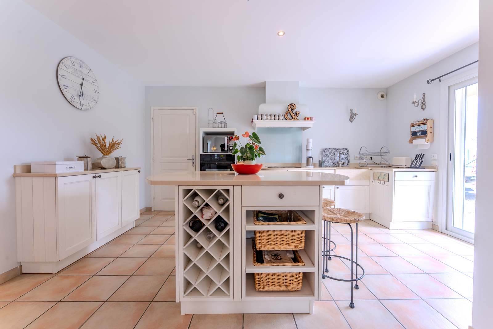 Côté équipements, cette maison ne manque de rien : pompe à chaleur air/eau, chauffage et rafraîchissement par le sol, adoucisseur d’eau, portail motorisé en aluminium, alarme, ainsi que la possibilité de raccorder l’eau de la Bourne pour l’arrosage du jardin.