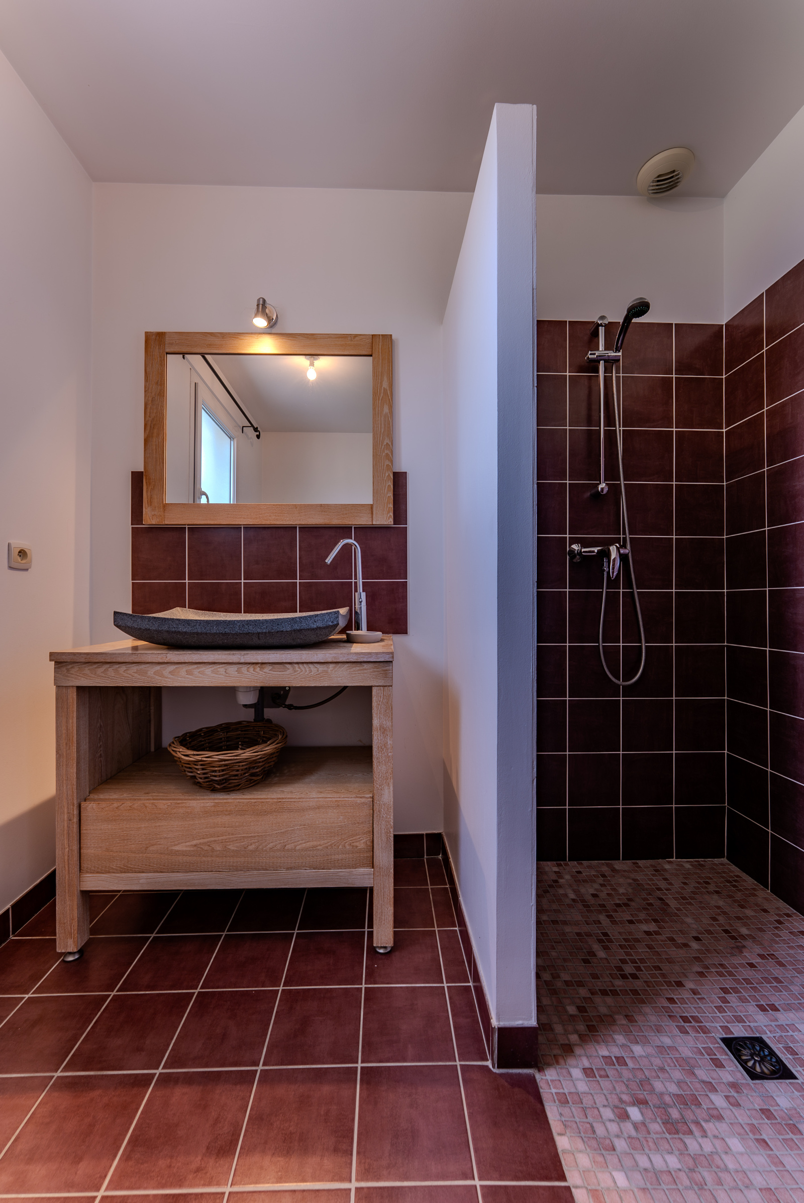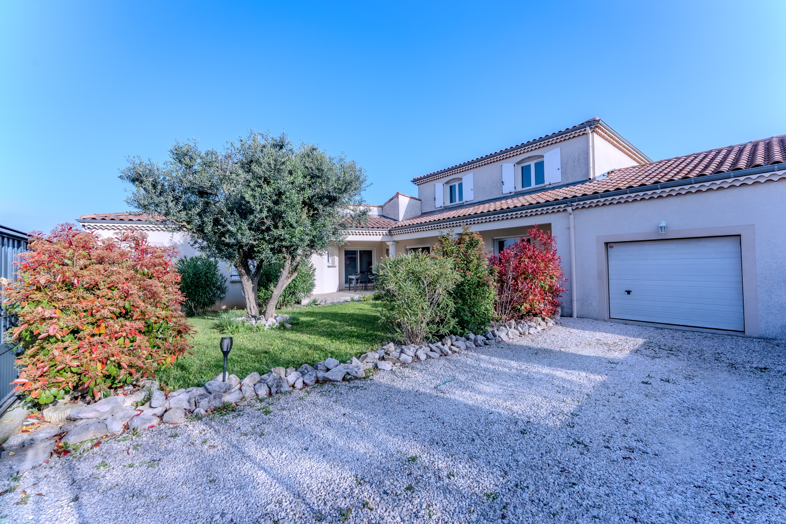Le grand garage de 46 m² au sol, agrémenté d’une mezzanine, constitue un atout supplémentaire, et l’entrée gravillonnée permet de stationner facilement deux véhicules supplémentaires.