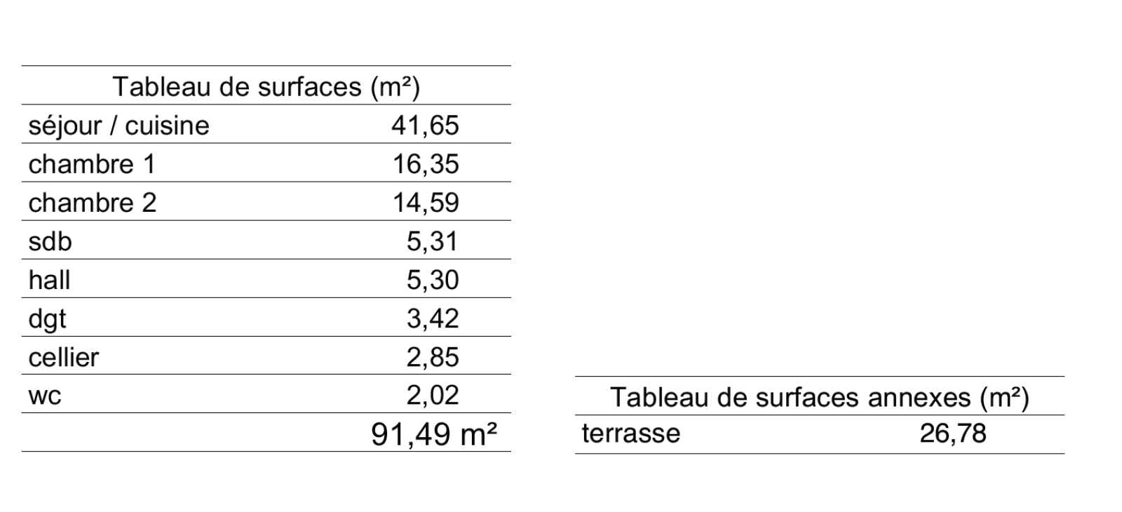 3 pièces - 91,49 m²